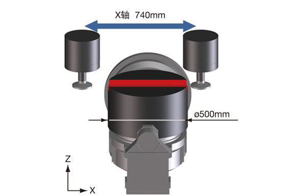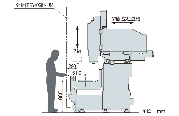 良好的接近性減輕操作人員的負擔 通過采用耳軸工作臺的軸向接近方式,實現(xiàn)了距工作臺中心515mm的距離。主軸接近性好,便可減輕加工準備作業(yè)時操作人員的負擔,提高作業(yè)效率。 ![]() |