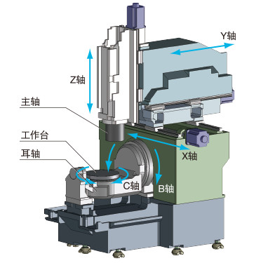 耳軸工作臺的B軸采用高剛性、適合高速驅(qū)動的滾子齒形凸輪、C軸采用低速旋轉(zhuǎn)時也能產(chǎn)生大扭矩的直接驅(qū)動式電機,可進行高速、高精度加工。 高速動作 ?B軸:50min-1 ?C軸:120min-1(標準規(guī)格) 1,200min-1(特殊規(guī)格)〈車削模式時〉 分度精度(實測值) ?B軸分度精度/重復(fù)精度:±1.78秒/±0.50秒 ?C軸分度精度/重復(fù)精度:±2.26秒/±0.12秒 ※記載的數(shù)據(jù)為實測值,不是保證值 |