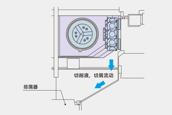 穩(wěn)定持續(xù)加工 提升切屑處理性能 避免切屑附著于刀具的工作臺結(jié)構(gòu) 通過刀塔旋轉(zhuǎn),使附著于刀具的切屑易于脫落 防止機(jī)內(nèi)切屑堆積的擋板 ● 分隔滑動面與加工室的防護(hù)罩 ● 垂直式防護(hù)罩設(shè)計(jì)便于切屑排出 ● 到排屑器的距離短,切屑流動順暢 ![]() |