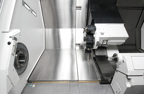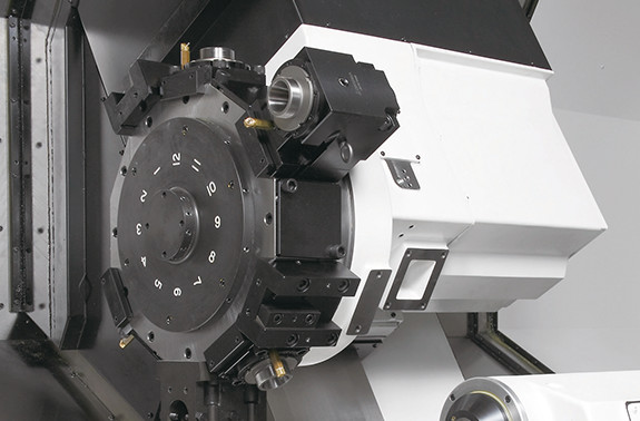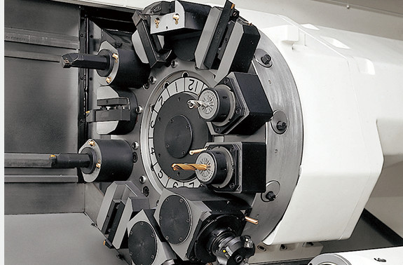 強(qiáng)力重切削也能輕松應(yīng)對(duì)的強(qiáng)力卡緊 ● 采用了大徑連接器(LB35Ⅲ:ø354、LB45Ⅲ:ø460)強(qiáng)力油壓卡緊系統(tǒng)的刀架 ● 采用減少刀具干涉的大徑刀架 (對(duì)邊LB35Ⅲ:570mm、LB45Ⅲ:700mm) ● 使用了伺服電機(jī)的NC刀架 |