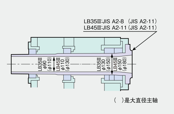 適宜于軸加工的內(nèi)置型尾架 ● 標(biāo)準(zhǔn)配置采用高剛性的內(nèi)置式。 套管軸直徑 LB35Ⅲ:ø120mm、LB45Ⅲ:ø130mm 尾架內(nèi)置 MT.No5 ![]() |