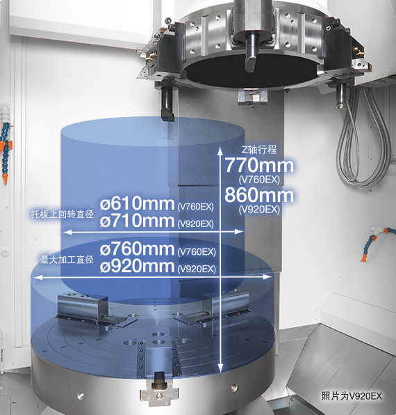 寬大加工區(qū)域?qū)募庸ば枨髲V 在節(jié)省空間的同時,實現(xiàn)較廣的加工區(qū)域。擁有足夠的空間(大回轉(zhuǎn)直徑:ø800mm/V760EX、ø1,000mm/V920EX),即使異形工件也可實現(xiàn)裝卡,滿足用戶較廣的加工需求。 ![]() |
