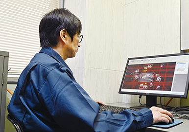 18年來(lái),我們堅(jiān)持使用“ADMAC-Parts”(OKUMA零件加工用CAD/CAM系統(tǒng))創(chuàng)建程序。對(duì)我而言,為“MB-46VAE”創(chuàng)建配置旋轉(zhuǎn)工作臺(tái)的4軸加工程序非常困難。因此,當(dāng)我向一直提供咨詢服務(wù)的OKUMA數(shù)字解決方案課說明該情況后,他們建議“MB-V是立式加工中心,但可以修改臥式加工中心的“ADMAC-Parts”進(jìn)行對(duì)應(yīng)。”立即委托后,程序創(chuàng)建時(shí)間真的減少了一半以上。